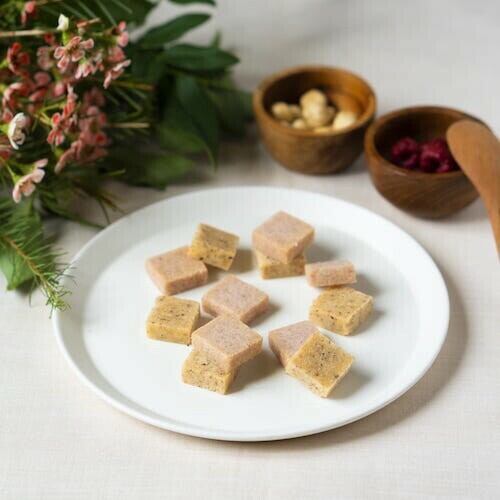 ヘーゼルナッツの香ばしさとラズベリーの酸味がそれぞれ楽しめます。米粉、米油、てんさい糖、塩は国産を使用し、卵や乳といった動物性食品を一切使用してないヴィーガンのクッキーです。