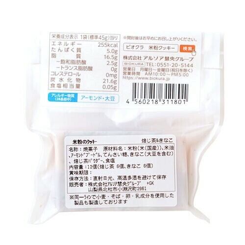 素材の味と食感を活かしたシンプルな米粉クッキー。焙じ茶ときなこの香ばしい香りは、ほっと一息つきたいときにおすすめのクッキーです。保存料や香料といった添加物、ショートニングも不使用の安心安全なお菓子です。健康を気にされる方や、お子様、卵や乳、小麦アレルギーの方などにおすすめです。原材料にこだわり、より安心・安全を追求した商品となっています。